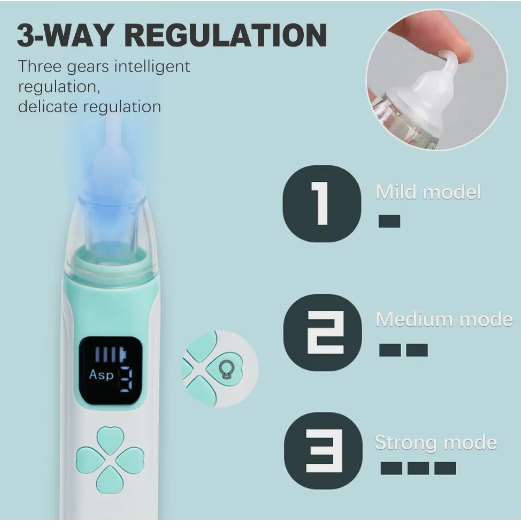 Aspiratorul nostru nazal are o functie foarte unica, are muzica pentru calmarea si distragerea atentiei bebelusului, deoarece nimanui nu-i face placere plansul pruncului sau. Cu toate acestea, aspiratorul nazal electronic, care are muzica si lumini, va poate ocupa copilul suficient de mult pentru ca dvs. sa curatati inpuritatiile deranjante inainte ca acesta sa aiba sansa de a indeparta obiectul. Aspiratorul nazal contine 4 varfuri nazale reutilizabile si lavabile si trei grade de putere de aspirare care ajuta la curatarea usoara si confortabila.