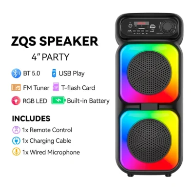 Boxă Portabilă Multifuncțională cu RGB LED, Bluetooth, Radio FM și TWS
