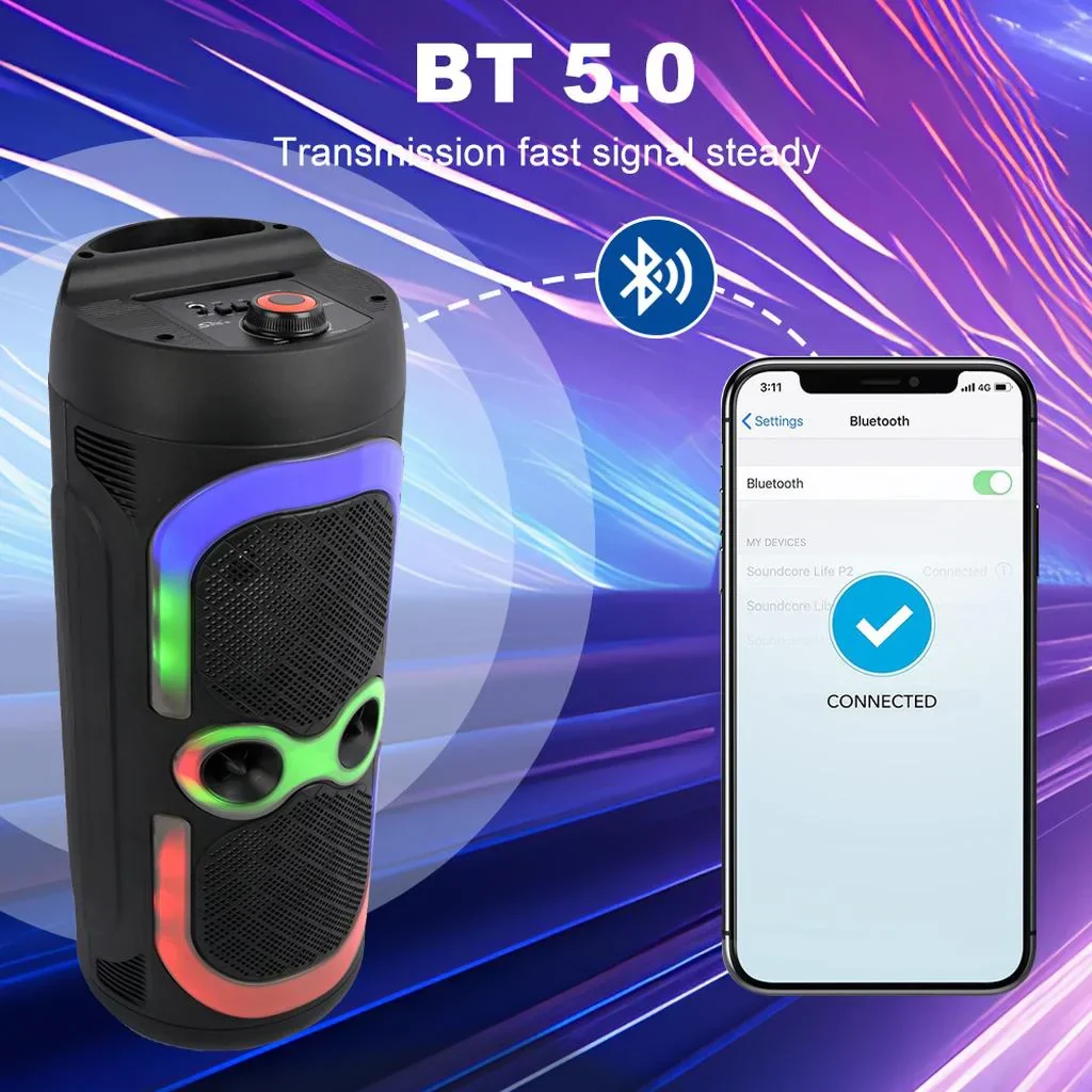 Boxă Portabilă Sing-e 6.5” x2 cu Bluetooth, Lumini RGB, USB/TF, Radio FM și Microfon – 20W, TWS