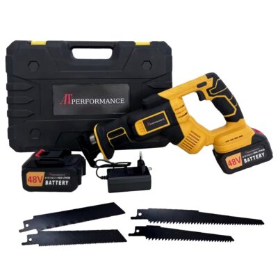 Prețul inițial a fost: 499,00 lei.339,00 leiPrețul curent este: 339,00 lei.Fierăstrău Electric Sabie AT PERFORMANCE® 48V, 2 Acumulatori, 3000 RPM, Set Lame și Cutie Transport