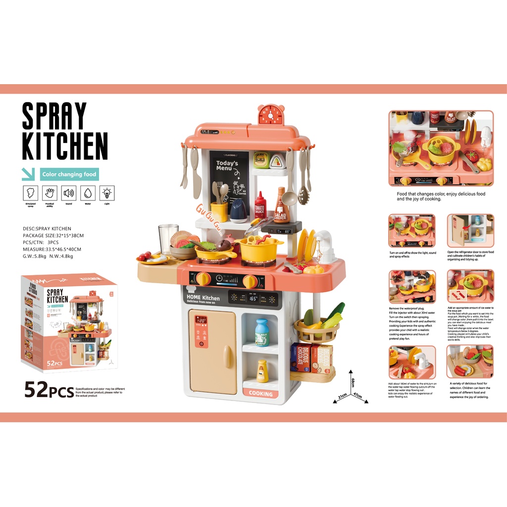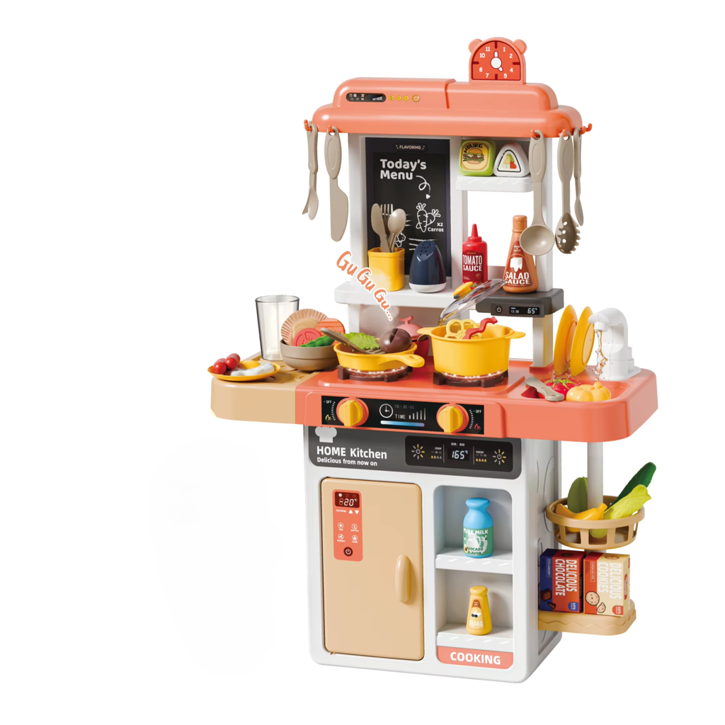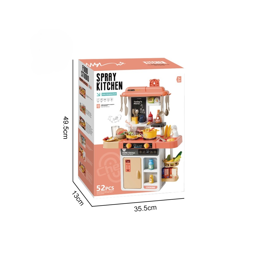 Bucătărie de jucărie copii „Spray Kitchen” – Set interactiv 52 piese cu abur, lumini și sunete