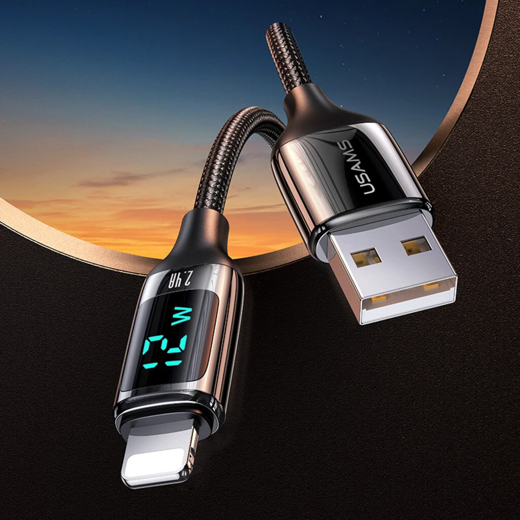 Cablu de Încărcare și Transfer Date USAMS cu Display Digital LED, 1.2m, 2.4A, 12W