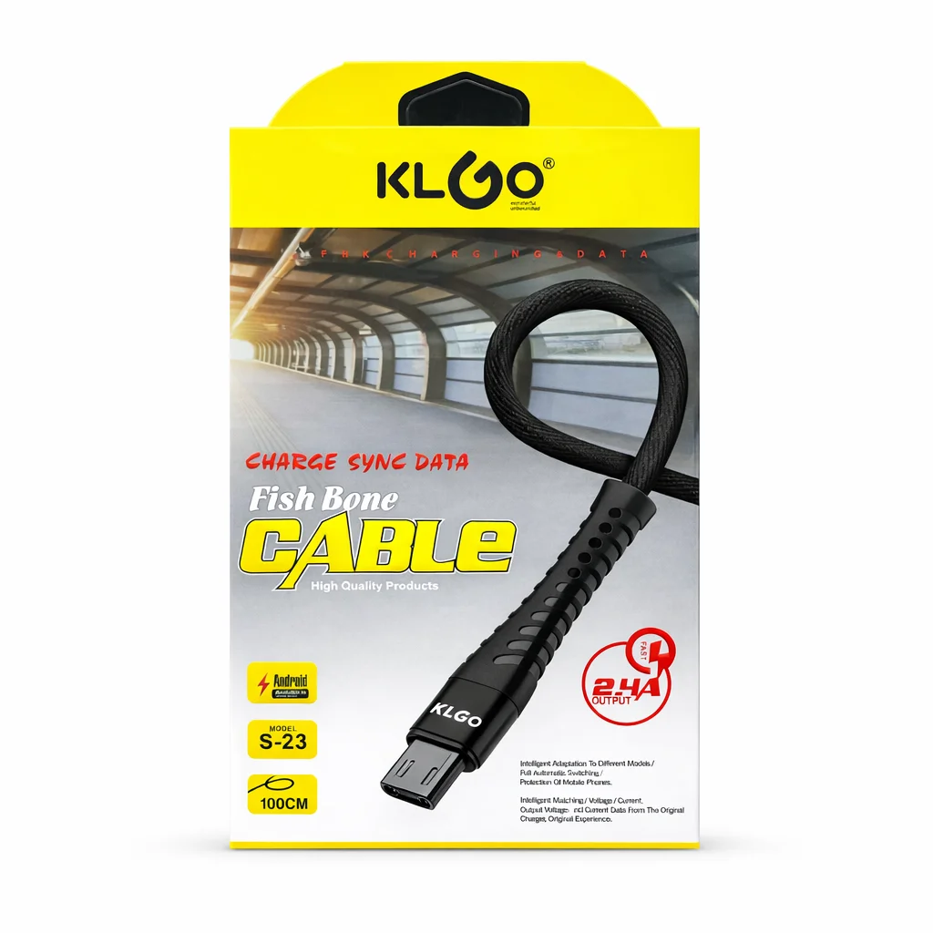 Îmbină durabilitatea cu performanța folosind cablul KLGO Fish Bone S-23, proiectat pentru încărcare rapidă și transfer de date stabil. Designul modern tip „fish bone” oferă rezistență sporită la îndoire și uzură, fiind ideal pentru utilizarea zilnică.