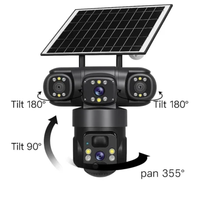 Cameră de Supraveghere Solară 4G/WiFi cu 3 Lentile și Vedere Panoramică 360°