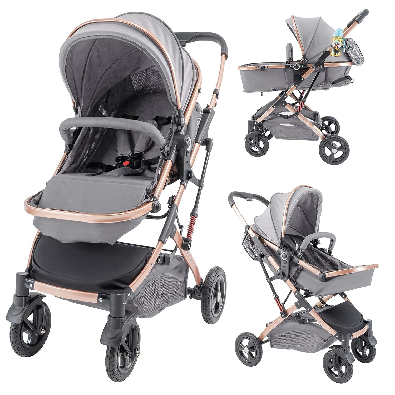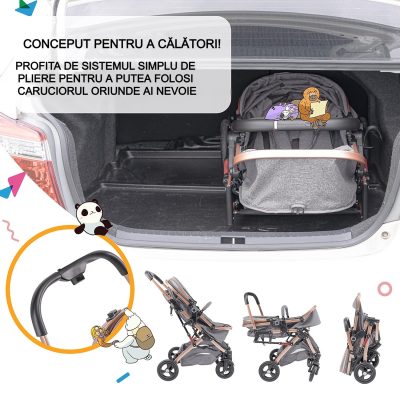 Cărucior 2 în 1 KIDOO® – Cărucior Pliabil Reversibil, cu Coș de Depozitare Spațios