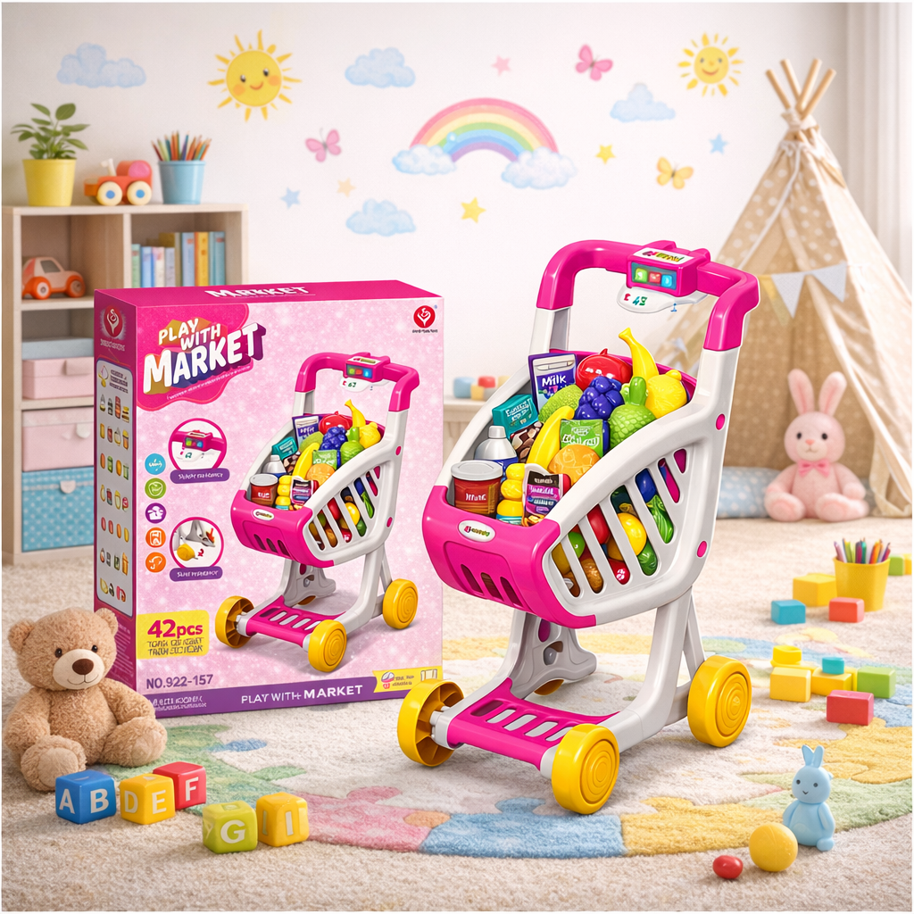 Transformă joaca într-o experiență realistă de cumpărături cu acest cărucior interactiv pentru copii! Setul „Play With Market” este perfect pentru micii exploratori care adoră să imite activitățile adulților și să se joace de-a magazinul.