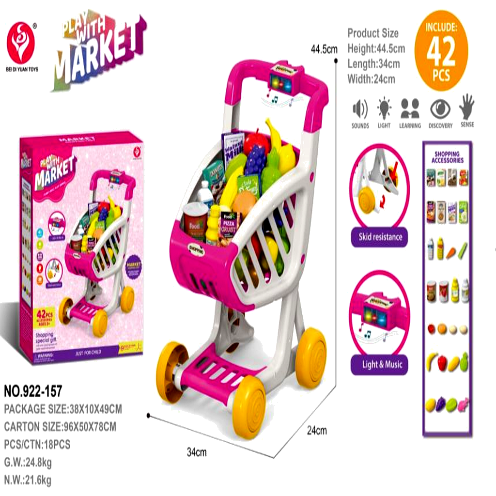 Cărucior de cumpărături copii Play With Market 42 piese cu lumini și sunete