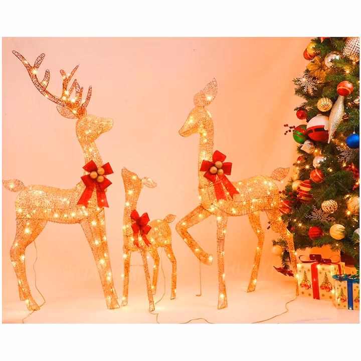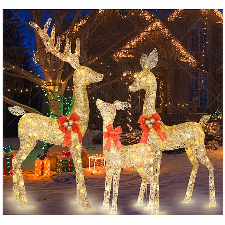 Acesti reni de Craciun este special conceput pentru Craciun, renii de Craciun legat cu un clopot, suprafata paietelor stralucitoare, lumina interna de 240 LED-uri alb cald si stralucitor, indiferent unde este plasata este cea mai orbitoare decoratiuni de Craciun!