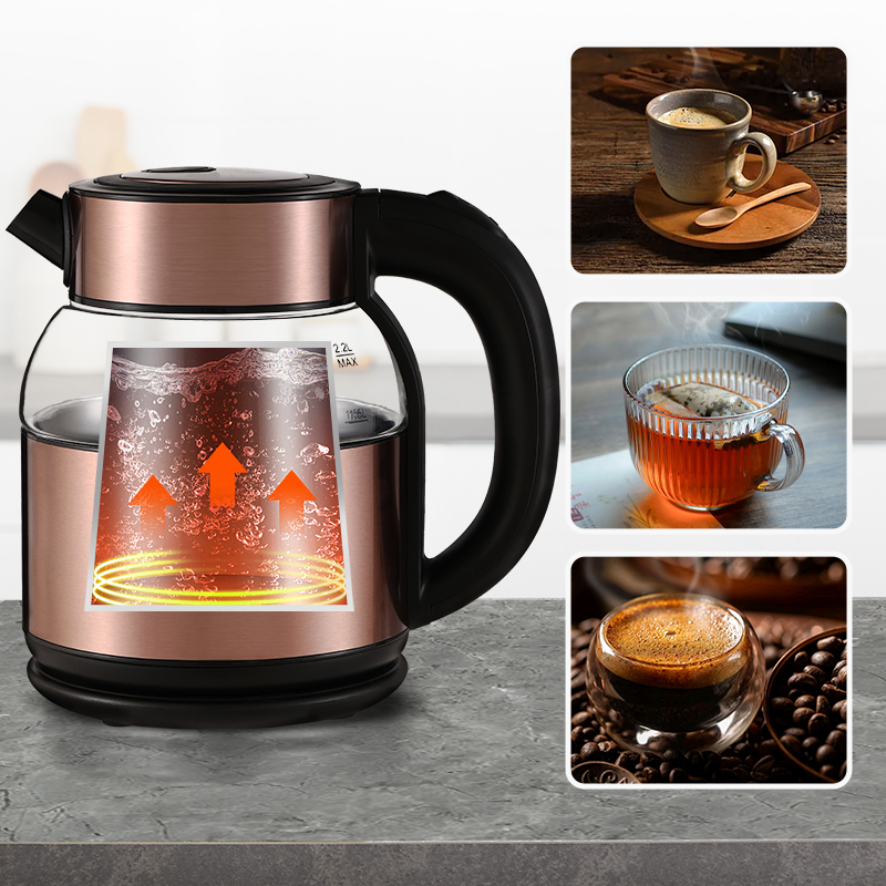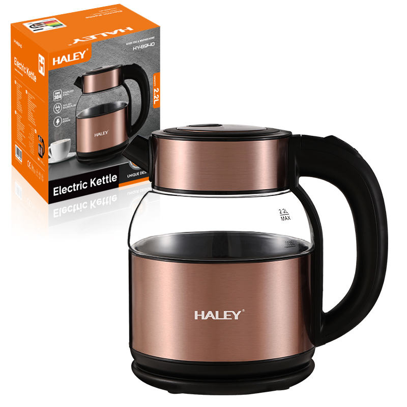 Fierbător Electric Portabil HALEY 2,2L, 2000W, Inox & Sticlă – Încălzire Rapidă, Design Elegant, Protecție Inteligentă