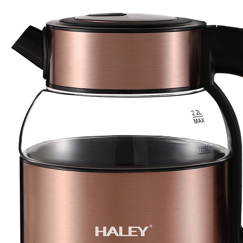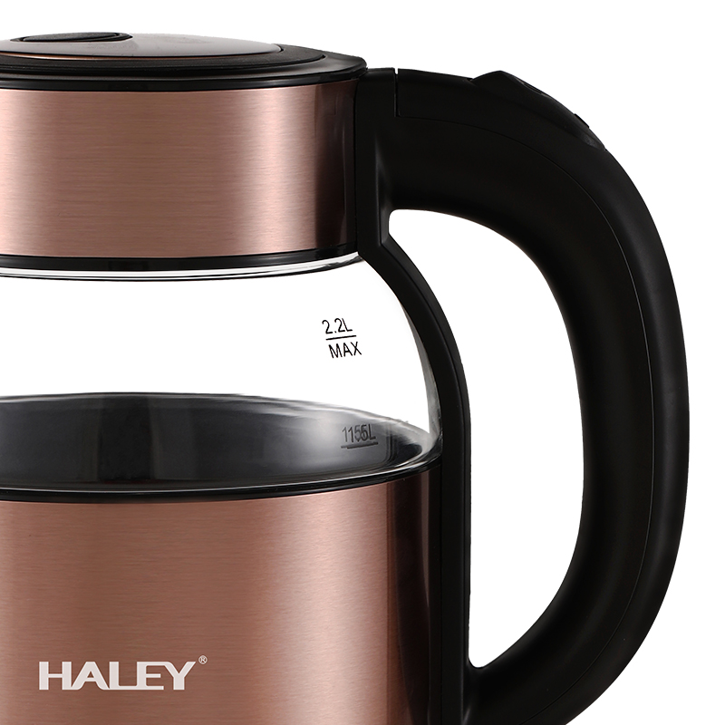 Fierbător Electric HALEY 2.2L, 2000W, Inox și Sticlă, Oprire Automată, Protecție Anti Fierbere Uscată, Bază 360°