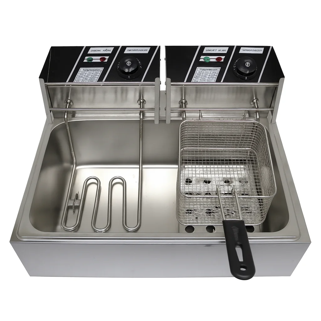 Descriere produs – Friteuză Electrică Profesională Dublă AT-82, 12 Litri (2 × 6L, 2 × 2500W)