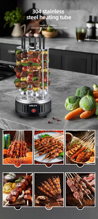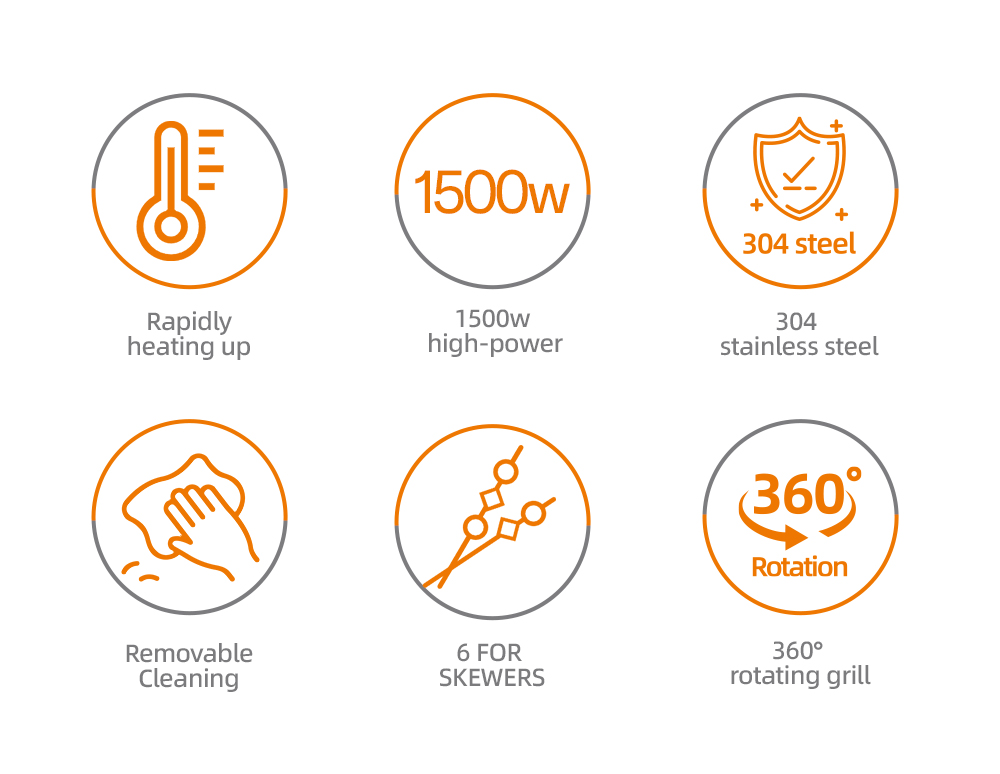 Rotire 360° pentru Preparare Uniformă: Datorită sistemului de auto-rotire la 360 de grade, alimentele sunt gătite uniform, oferind texturi perfecte și gusturi inegalabile. Ideal pentru iubitorii de kebab, frigărui și alte preparate pe bază de carne sau legume.