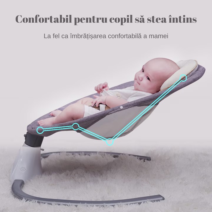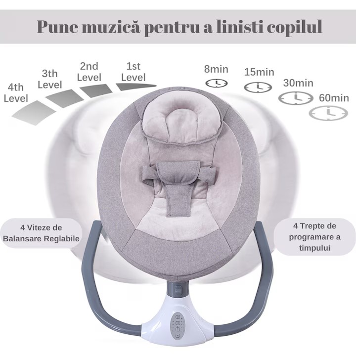 ✅ 4 moduri de oscilație automată – imită mișcările naturale pentru calmarea bebelușului