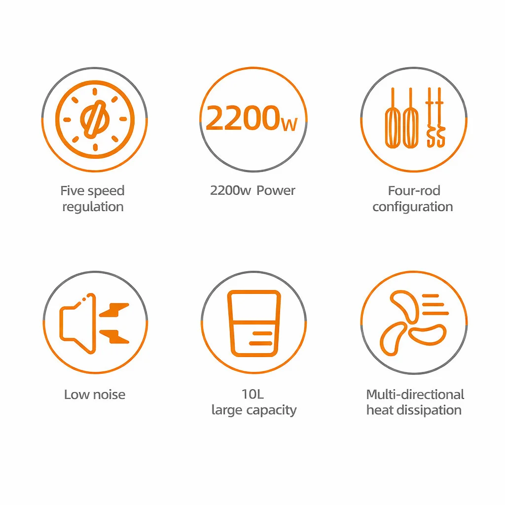 Transformă fiecare rețetă într-un succes cu mixerul planetar HALEY HY-2419, un aparat puternic și elegant, ideal pentru bucătăria ta. Cu o capacitate generoasă de 10 litri și motor de 2200W, acest mixer este perfect atât pentru uz casnic intensiv, cât și pentru cofetării, patiserii sau restaurante.