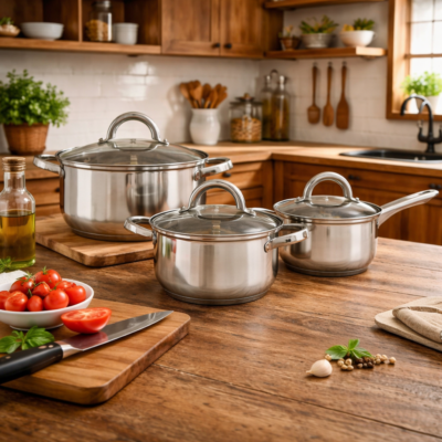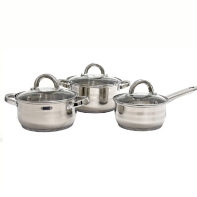 Set Oale din Inox 3 Piese cu Capace din Sticlă – Compatibile Inducție, Rezistente și Durabile