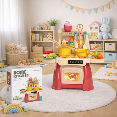 Prețul inițial a fost: 260,00 lei.150,00 leiPrețul curent este: 150,00 lei.Bucătărie de jucărie copii Home Kitchen 27 piese cu lumini și sunete