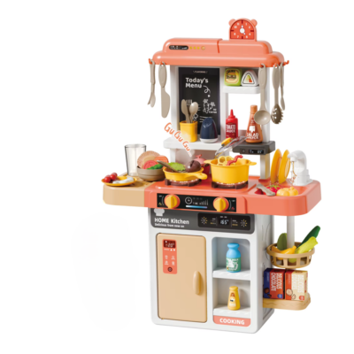Prețul inițial a fost: 109,00 lei.59,00 leiPrețul curent este: 59,00 lei.Bucătărie de jucărie copii Spray Kitchen 52 piese cu abur, lumini și sunete