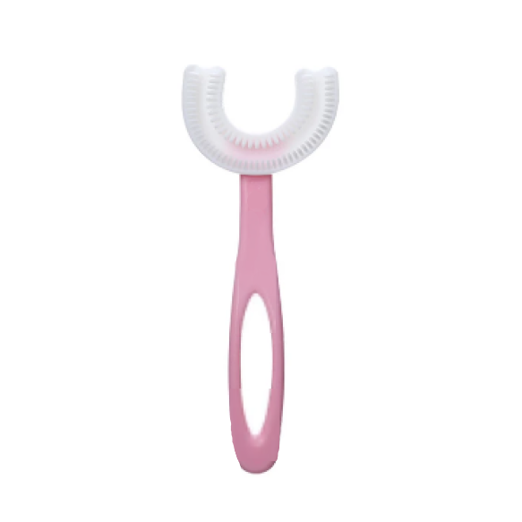 Periuta de dinti, circulare U-shape, pentru copiii de 2-12 ani, maner lung, roz