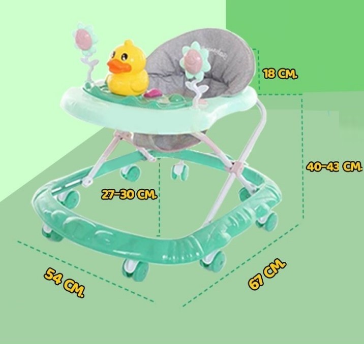 Premergator pliabil si muzical, At Performance, cu roti de silicon, Ratusca, 2 flori, Verde