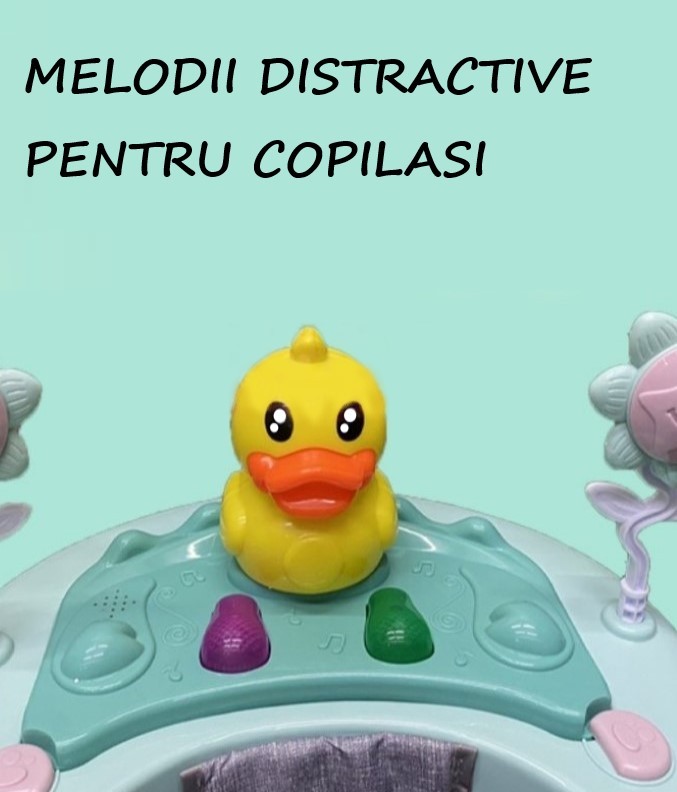 Masuta premergatorului cu 2 jucarii flori rotative si cu o figurina dragalasa
