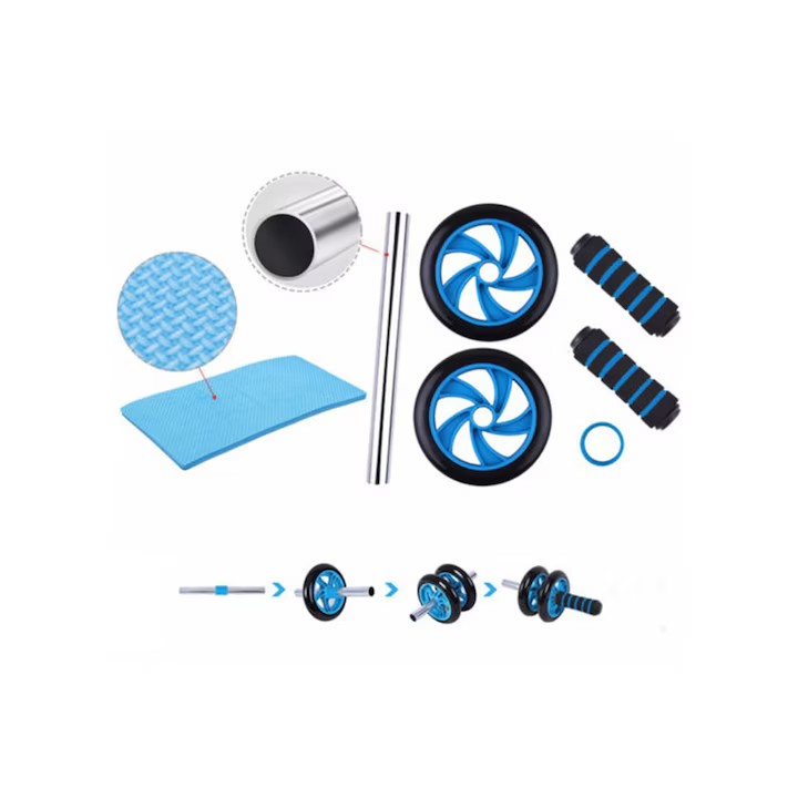 Roata dubla Fitness AT PERFORMANCE®, antiaderenta pentru abdomen, albastra.