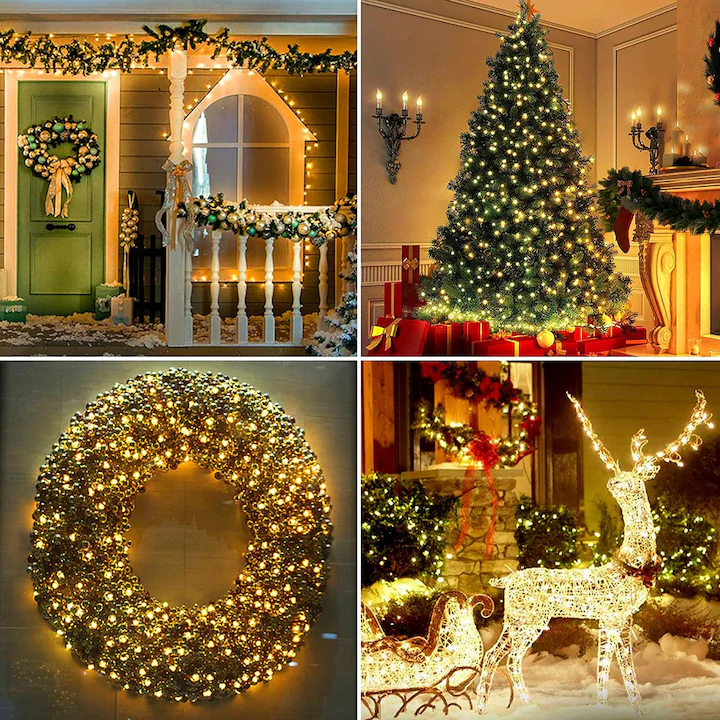 Lumina calda de culoare alba adauga o nota de eleganta si caldura decorului dumneavoastra de Craciun, iar firul negru se va integra discret in orice decor.