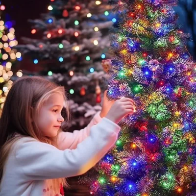 Lumina multicoloră adaugă o notă de eleganță și căldură decorului dumneavoastră de Crăciun, iar firul negru se va integra discret în orice decor.