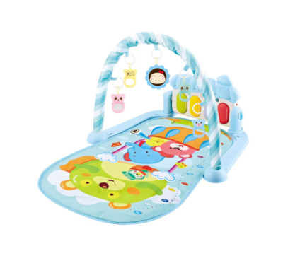 Saltea de activitati pentru bebelusi, AT PERFORMANCE®, centru de activitati multifunctional 4 in 1 cu muzicuta, covoras de joaca interactiv cu 5 jucarii senzoriale, jucarie muzicala pian pentru baieti si fete,76 cm, albastru deschis,0 luni +