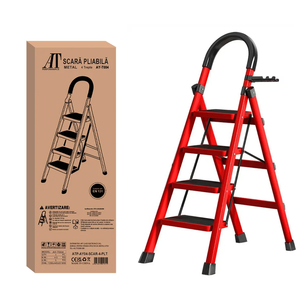 Scară pliabilă, 4 treptte, pentru uz casnic AT PERFORMANCE – Stabilitate, Siguranță și Confort în Orice Activitate