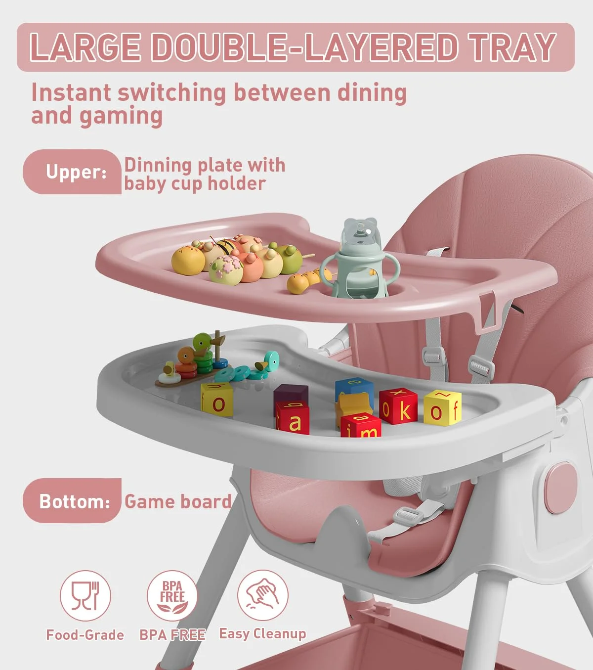 Scaun Multifuncțional 4 în 1 Roz – Design Modern și Portabil, Reglabil pe Înălțime și Înclinare, Ideal pentru Copii