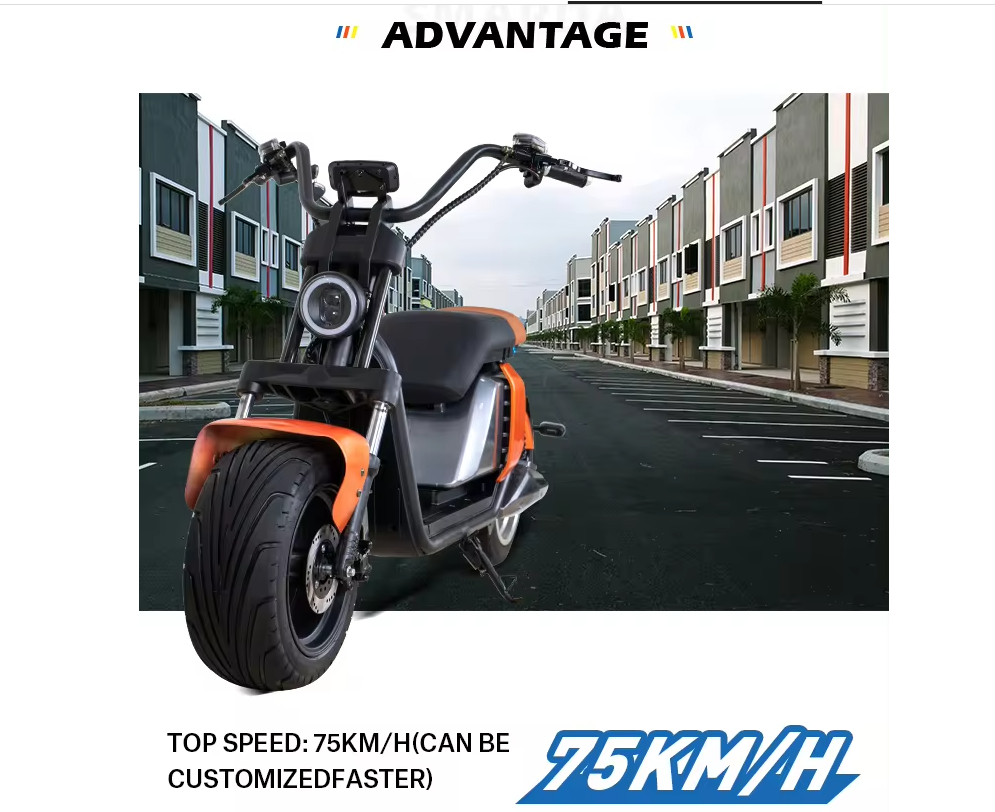 Motocicleta electrica E Moped de la AT PERFORMANCE este alegerea ideala pentru cei care doresc sa adopte un stil de viata eco-friendly fara a compromite performanta si confortul. Cu un motor de 2000W, aceasta motocicleta ofera o putere de neegalat, fiind perfecta pentru naveta zilnica sau pentru explorarea urbana. Bateria litiu de 60V 20AH asigura o autonomie suficienta pentru a parcurge distante semnificative, reducand necesitatea de reincarcare frecventa.