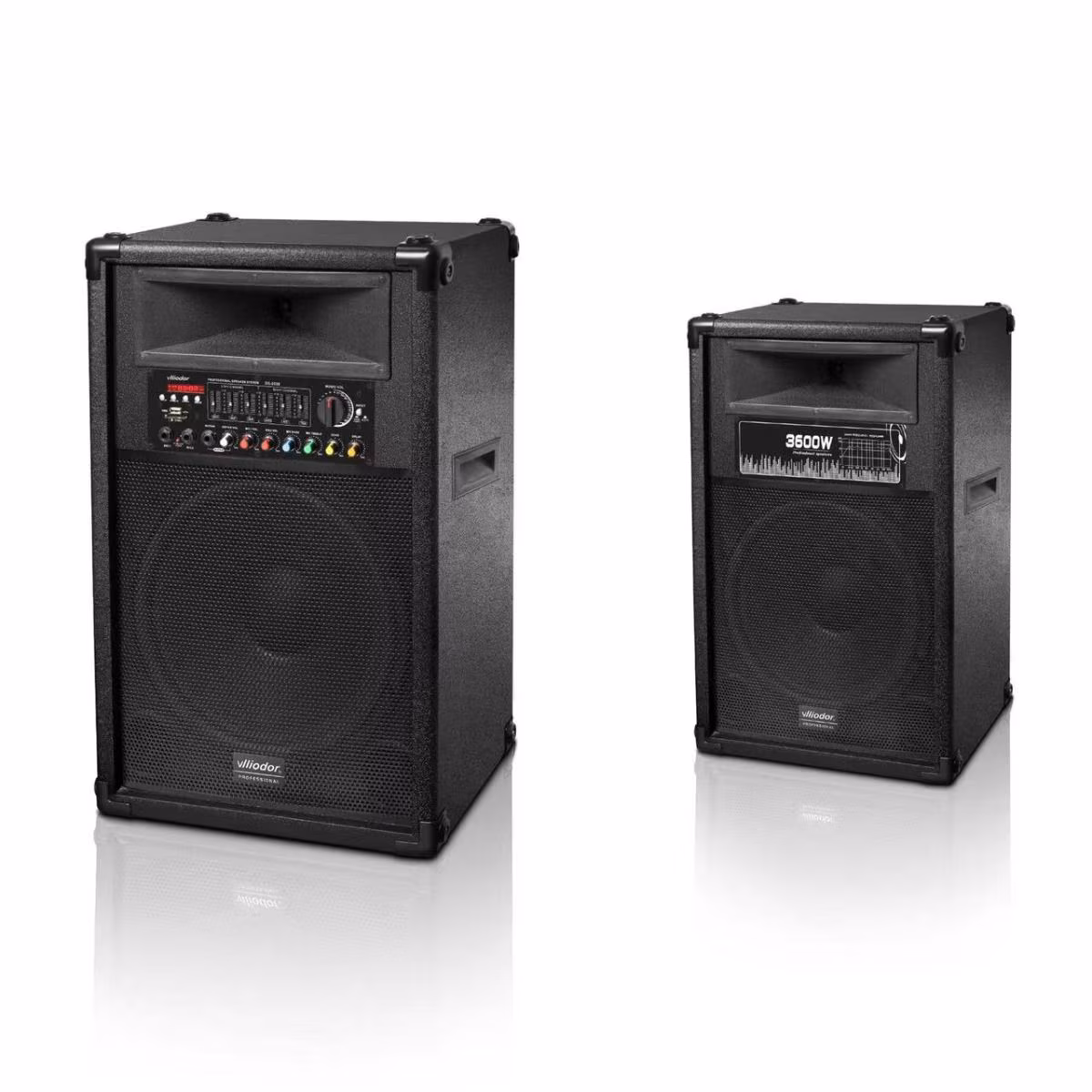 Boxe audio active Originale Vlliodor cu bluetooth. Petrecerea ta poate incepe oriunde,deoarece aceasta boxa are dimensiuni reduse si poate fi transportata foarte usor.Cu 2 difuzoare profesionale de mare putere, boxa se poate amplasa in orice unghi, fara sa fie nevoie de un montaj special oferind o auditie de exceptie. Astfel, ai parte de note clare si acorduri fine, la cel mai avantajos pret. La puterea maxima de 720 W RMS poti avea parte de auditii muzicale perfecte, cu reglaje fine pentru bass, ecou, inalte sau setari de karaoke,ai parte de cea mai buna reproducere a sunetelor,exact asa cum au fost inregistrate.
