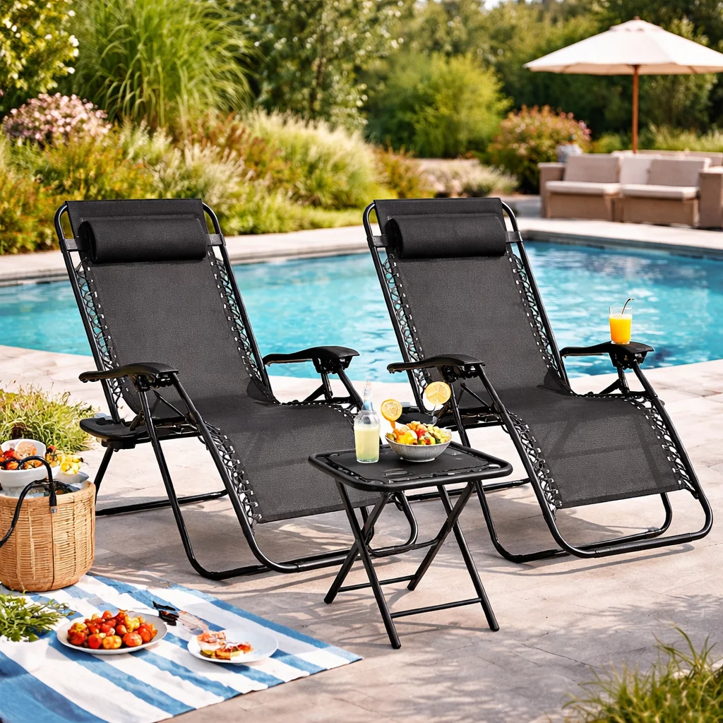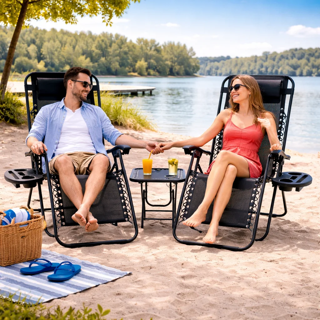 Set 2 Scaune Șezlonguri Zero Gravity + Masă cu Suport Pahare AT PERFORMANCE® – Pachet Promo Exterior