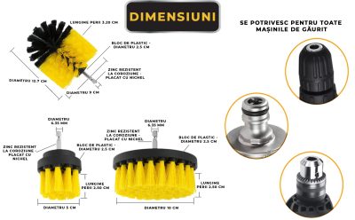 🔹 Obține o curățenie impecabilă fără efort! Alege Setul de 3 Perii Rotative Echo AT PERFORMANCE® și transformă-ți bormașina într-un aliat de nădejde pentru curățenie! ✨💪