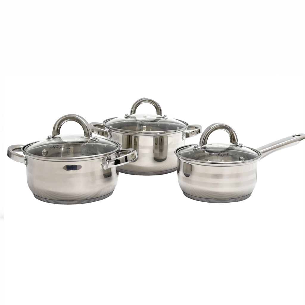Set Oale din Inox 3 Piese cu Capace din Sticlă – Rezistente și Practice pentru Orice Bucătărie