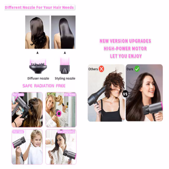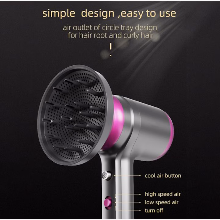Functie versatila: Acest uscator pentru uscare mai rapida si mai putine deteriorari ale parului; care blocheaza bucle, valuri si stiluri.