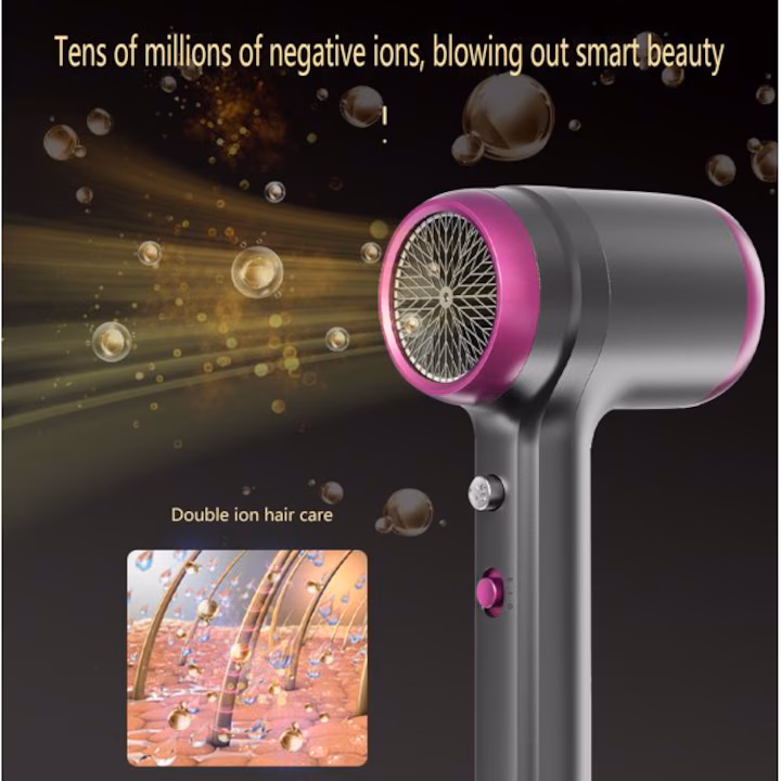 Uscator de par Original At Performance, cu Led, 2 trepte de Viteza, 2 Capete, Ioni Negativi, Aer rece/ cald, 1250 W, Gri/Fucsia