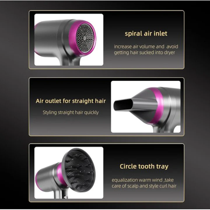 Conditionare ionica: Ajuta la combaterea incretului si scoate in evidenta stralucirea naturala a parului; Este inclusa o duza concentratoare pentru un flux de aer concentrat pentru a face parul neted si elegant.